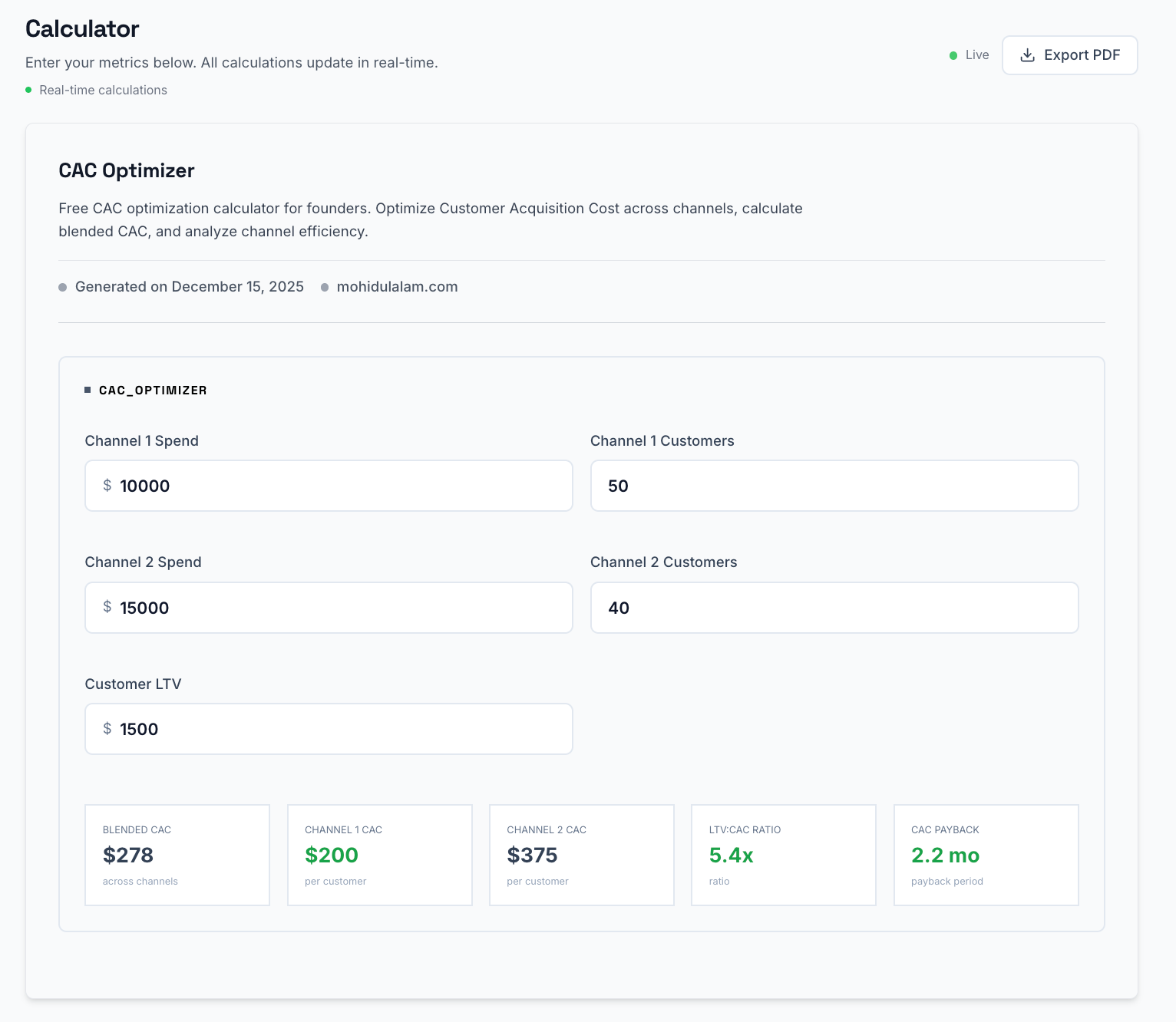 Keywords: CAC optimizer, customer acquisition cost optimization, marketing channel ROI calculator