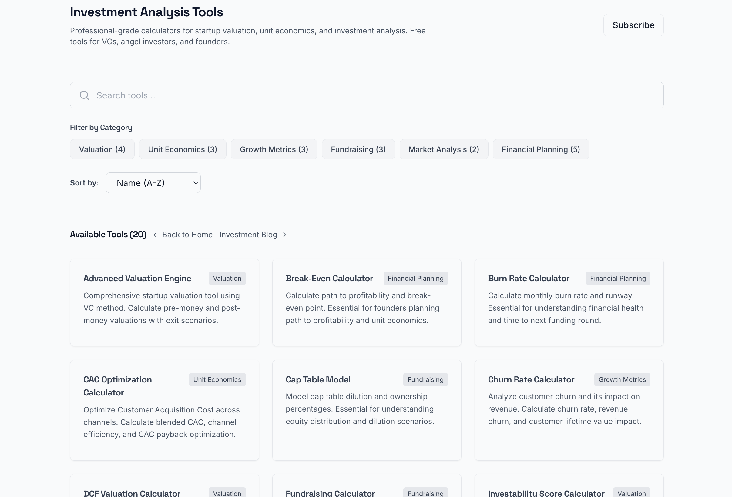 Free Investment Analysis Tools for Startups: 20+ Professional VC Calculators for Founders and Investors