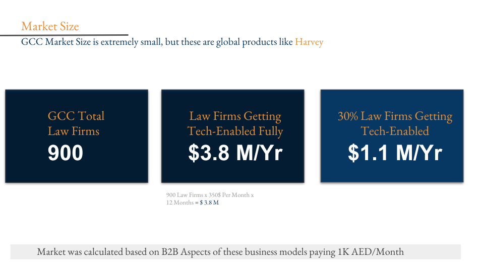 If 100% of GCC law firms adopted legal tech at an average price of $350 per month, the total annual market would be just $3.8 million.